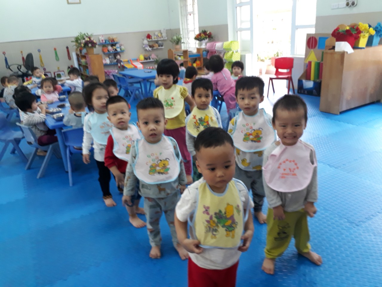 Một chế độ dinh dưỡng tốt ngay từ thời thơ ấu sẽ là nền tảng cho sự phát triển cả về thể chất lẫn tinh thần mà chỉ có khi trưởng thành mới có thể biết được. Bên cạnh chế độ dinh dưỡng trong bữa ăn, việc vệ sinh trước, trong và sau khi ăn cũng góp phần rất quan trọng trong việc hình thành thói quen cho trẻ, giúp trẻ phát triển toàn diện về nhân cách sau này. Lớp nhà trẻ D1 tổ chức hoạt động giờ ăn cho các con.