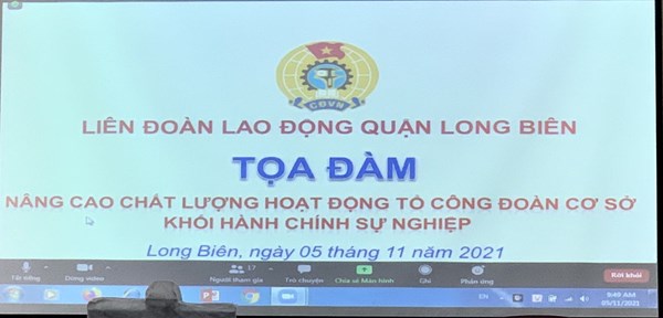 của LĐLĐ quận Long Biên, Ban giám hiệu, BCH Công đoàn và Ban thanh tra nhân dân trường MN Bắc Cầu đã tham dự Hội nghị tọa đàm" Nâng cao chất lượng hoạt động Tổ công đoàn thuộc Công đoàn cơ sở " khối hành chính sự nghiệp.