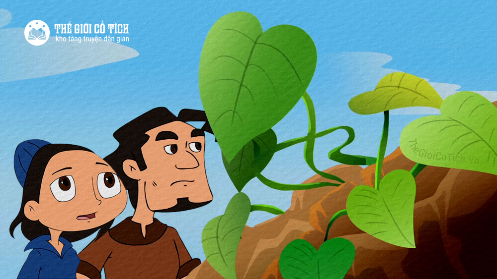 Nghe tiếng con gọi, hai vợ chồng đành bấm bụng, nuốt nước mắt. “Rêu đá, lá cây. làm sao con ta có thể ăn lâu ngày thay cơm gạo được!”.