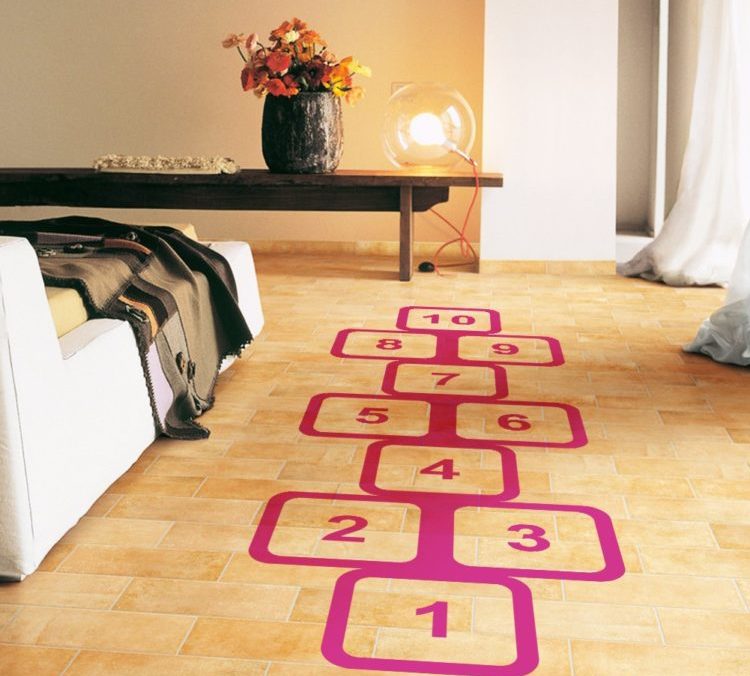 - Dùng số vẽ các ô trên sàn với số lượng mà bạn thích. Ghi số hay chữ cái vào các ô trên.