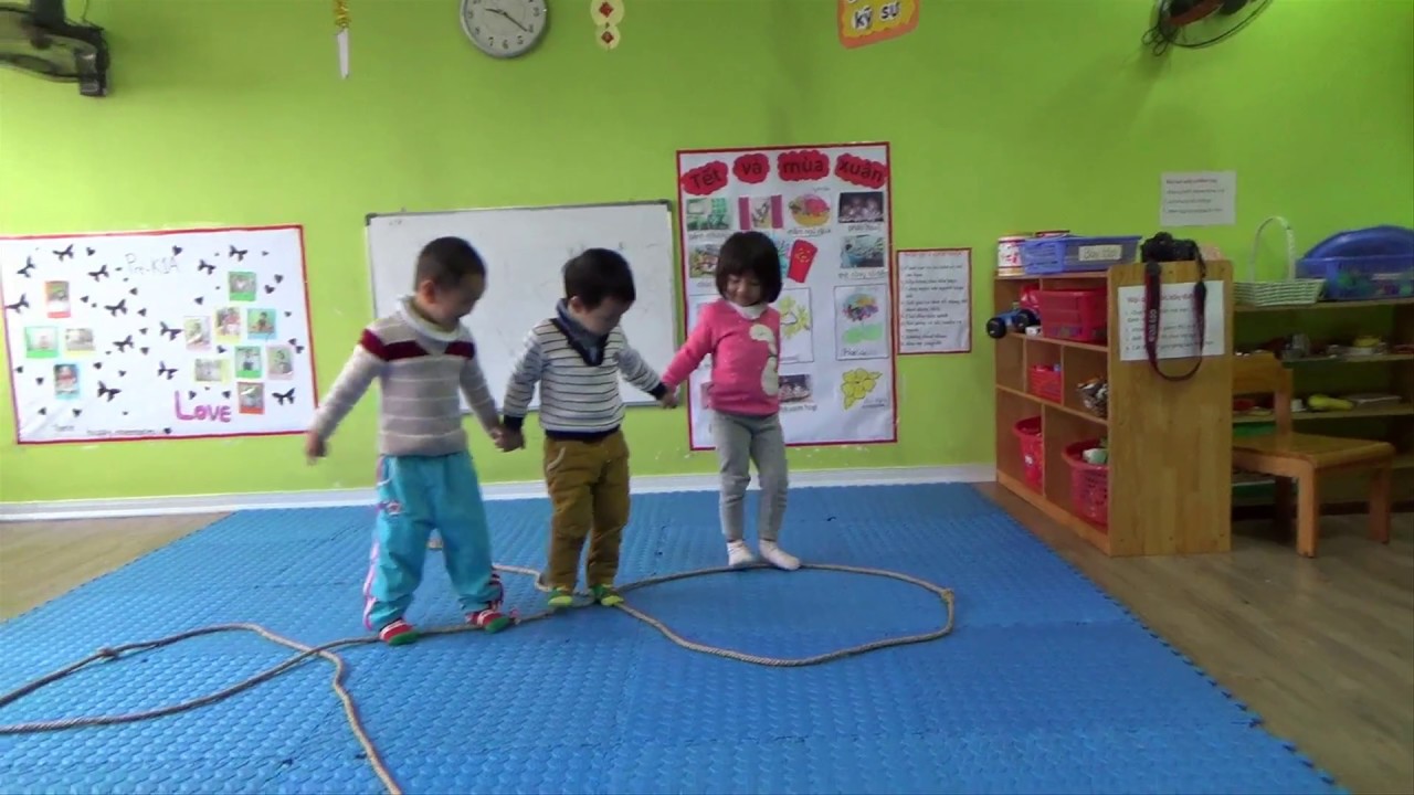 Với trò chơi vận động mầm non 4-5 tuổi này, bé sẽ dùng hết khả năng né chướng ngại vật để tránh thoát dây và lấy được đồ.