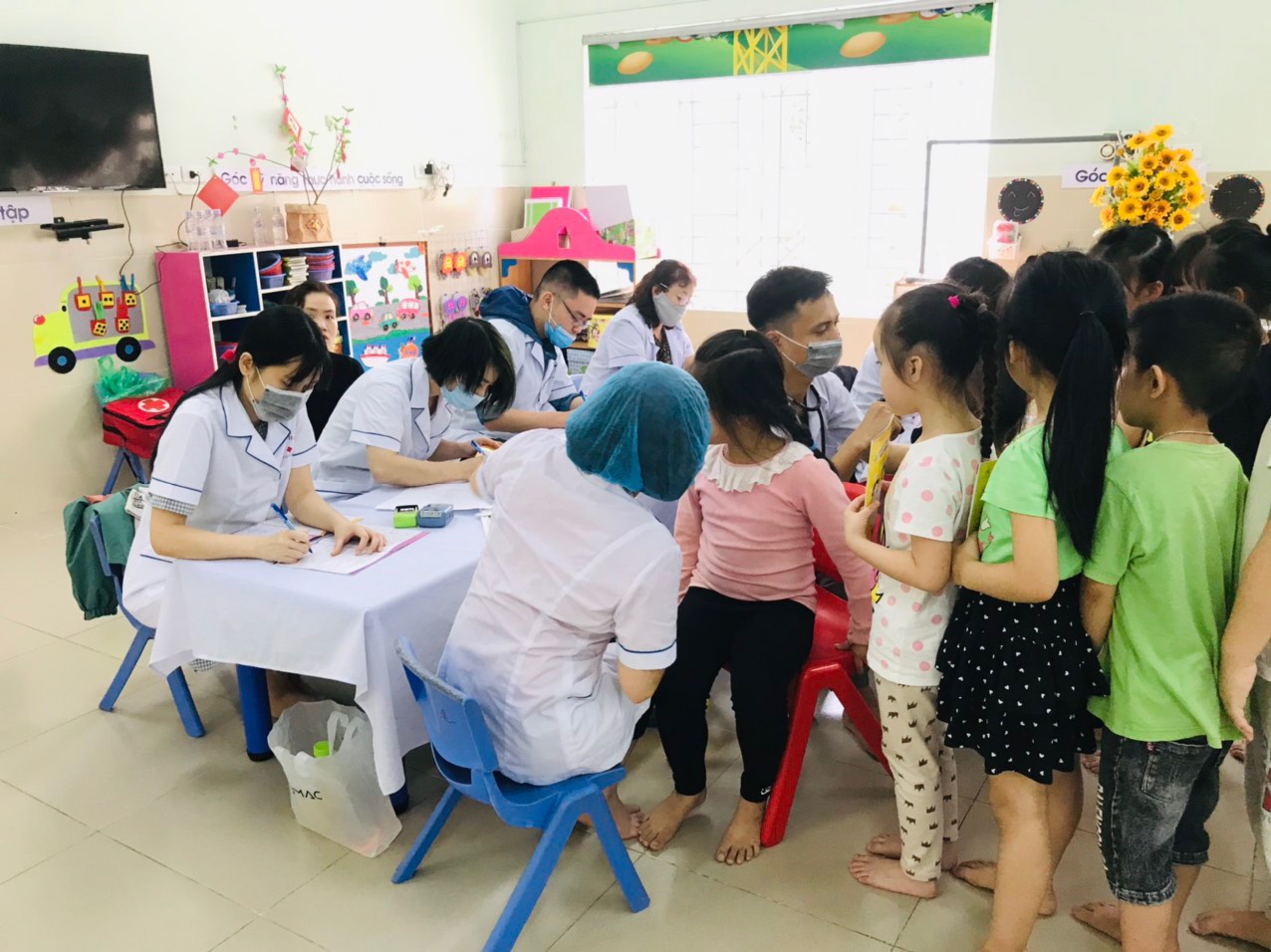 Sau đây là một số hình ảnh khám sức khỏe định kỳ lần II của các bạn nhỏ lớp MGL A1 trường mầm non Bắc Cầu.
